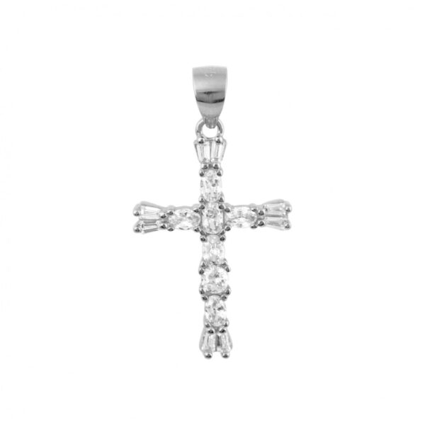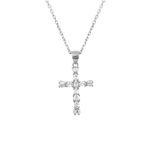 Σταυρός με Αλυσίδα Λευκό Ασήμι 925