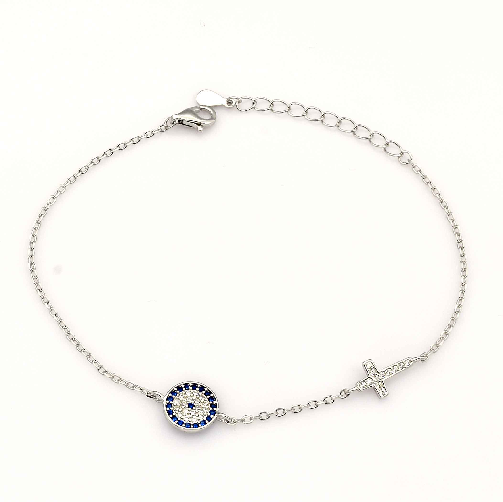 Βραχιόλι Μάτι Σταυρός Λευκό Ασήμι 925 ποσότητα