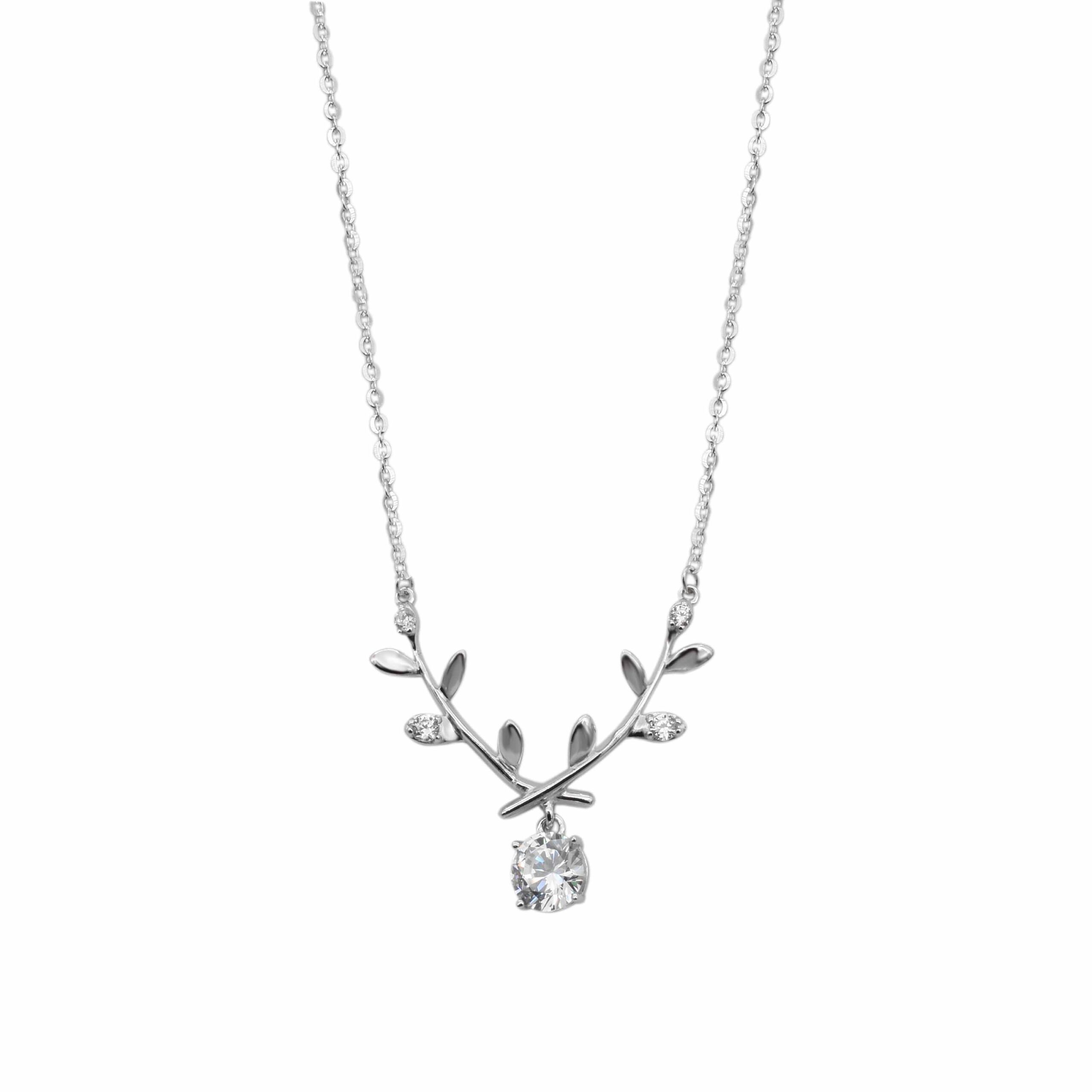 Κολιέ Κλαδί Ελιάς με Πέτρες Λευκό Ασήμι 925