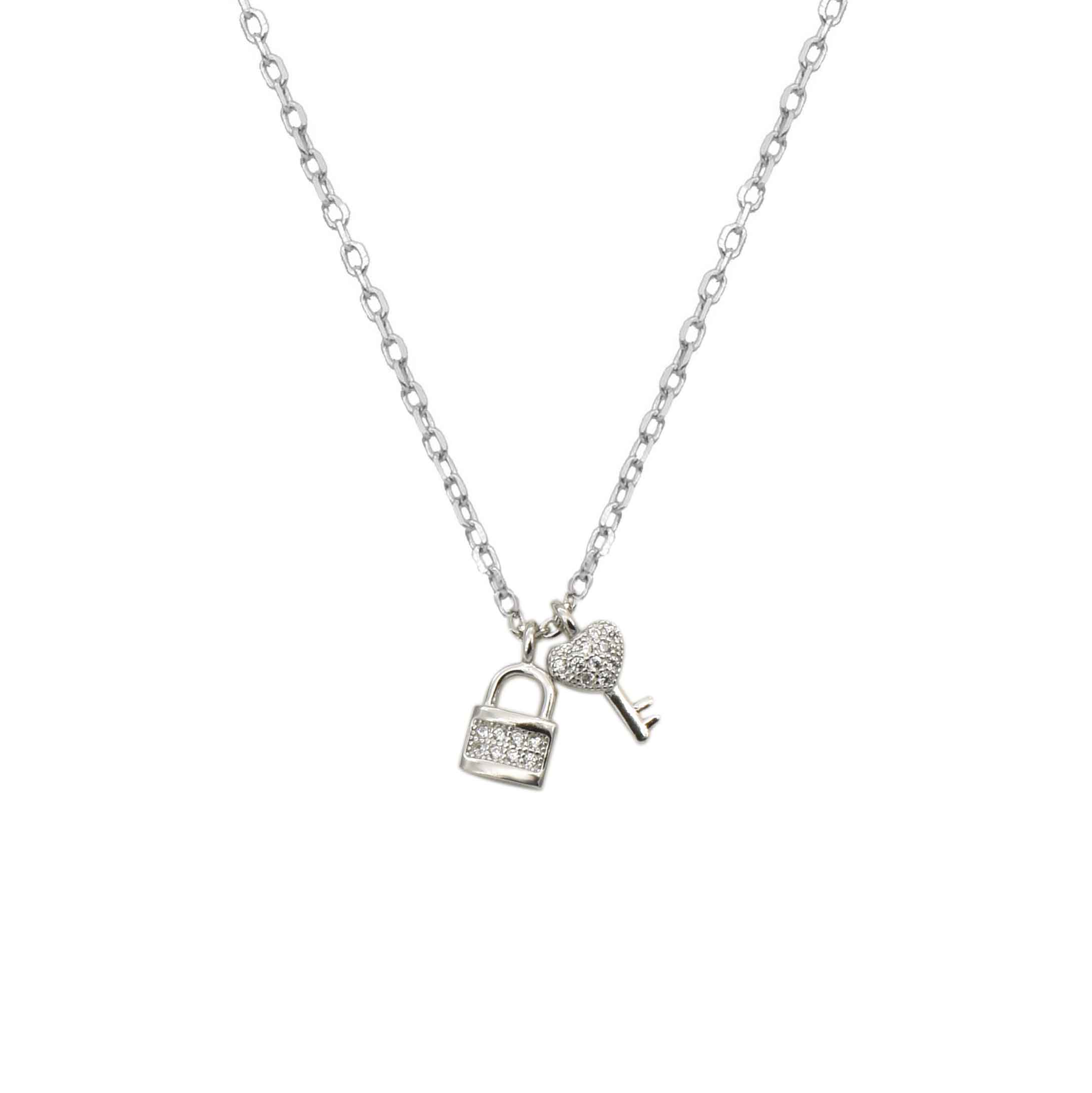 Κολιέ Κλειδαριά με Κλειδί Λευκό Ασήμι 925 ποσότητα
