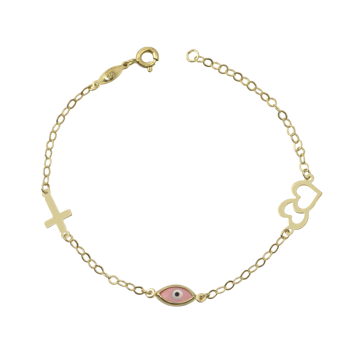 Παιδικό Βραχιόλι Μάτι Καρδιά Σταυρός Επίχρυσο Ασήμι 925