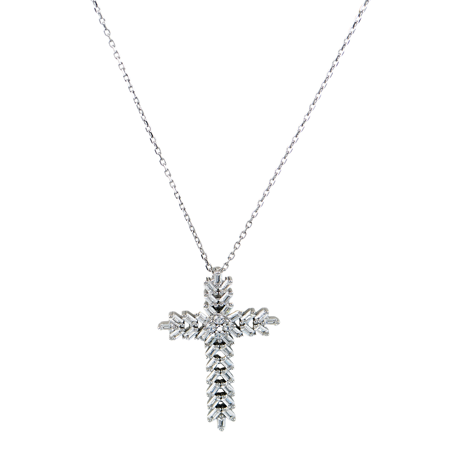 Σταυρός με Αλυσίδα Λευκός Ασήμι 925 2,2×3,5cm