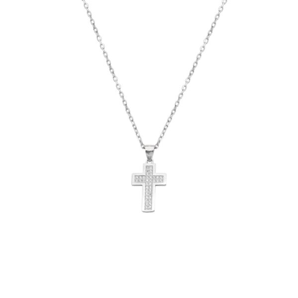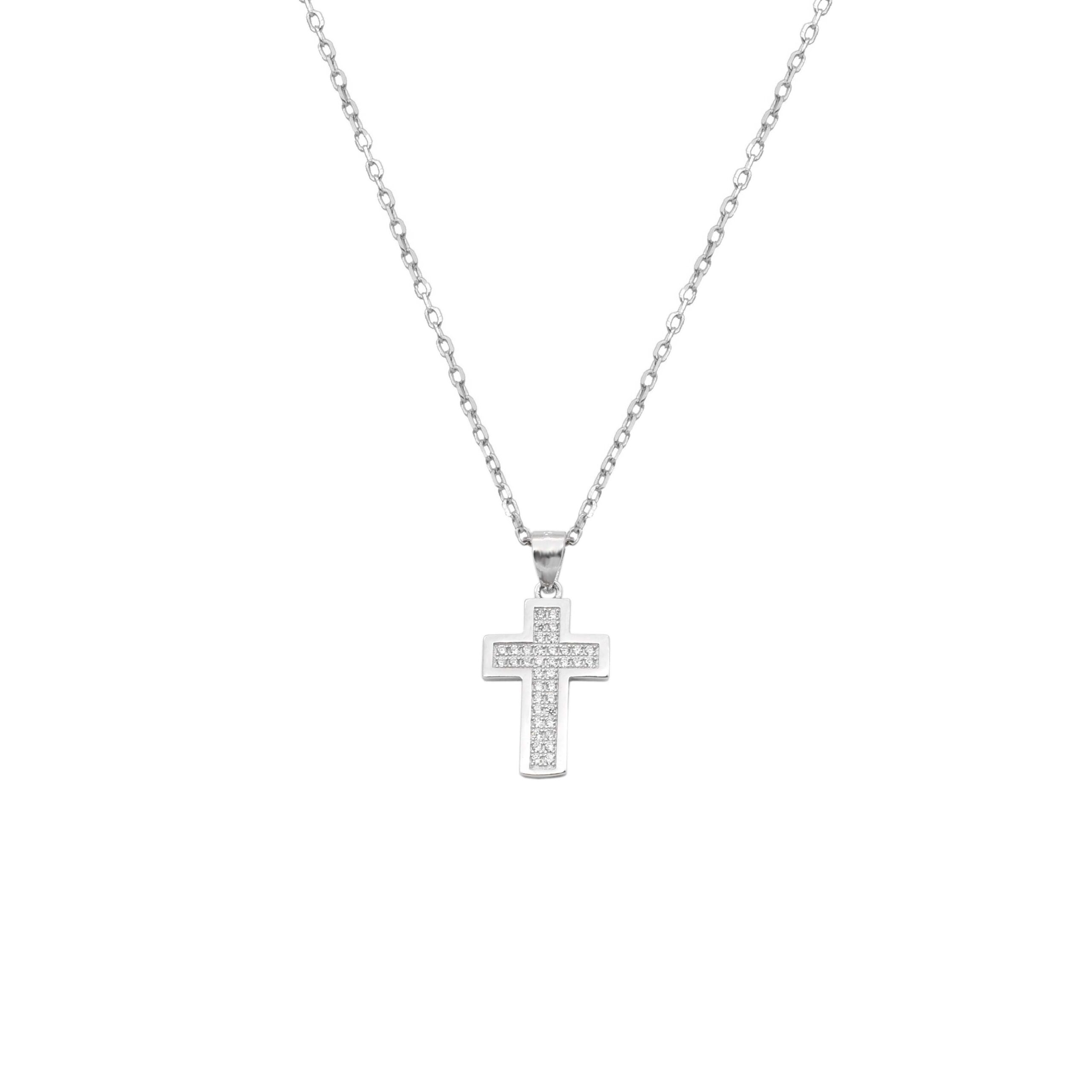 Σταυρός 1,3×2,5cm Με Αλυσίδα Λευκός Ασήμι 925