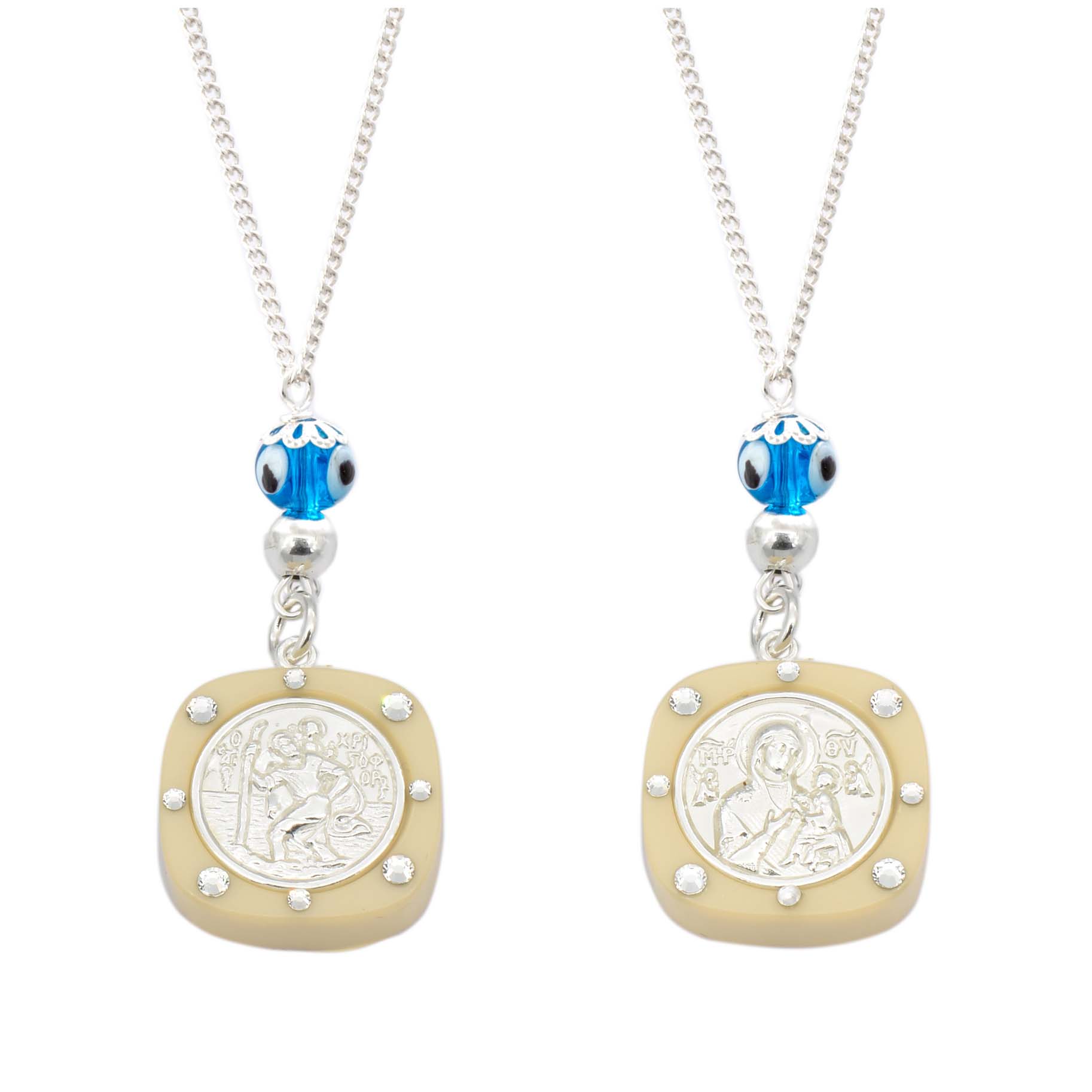 Φυλαχτό Αυτοκινήτου Διπλής όψης Παναγία-Άγιος Χριστόφορος από Ασήμι 925 ποσότητα