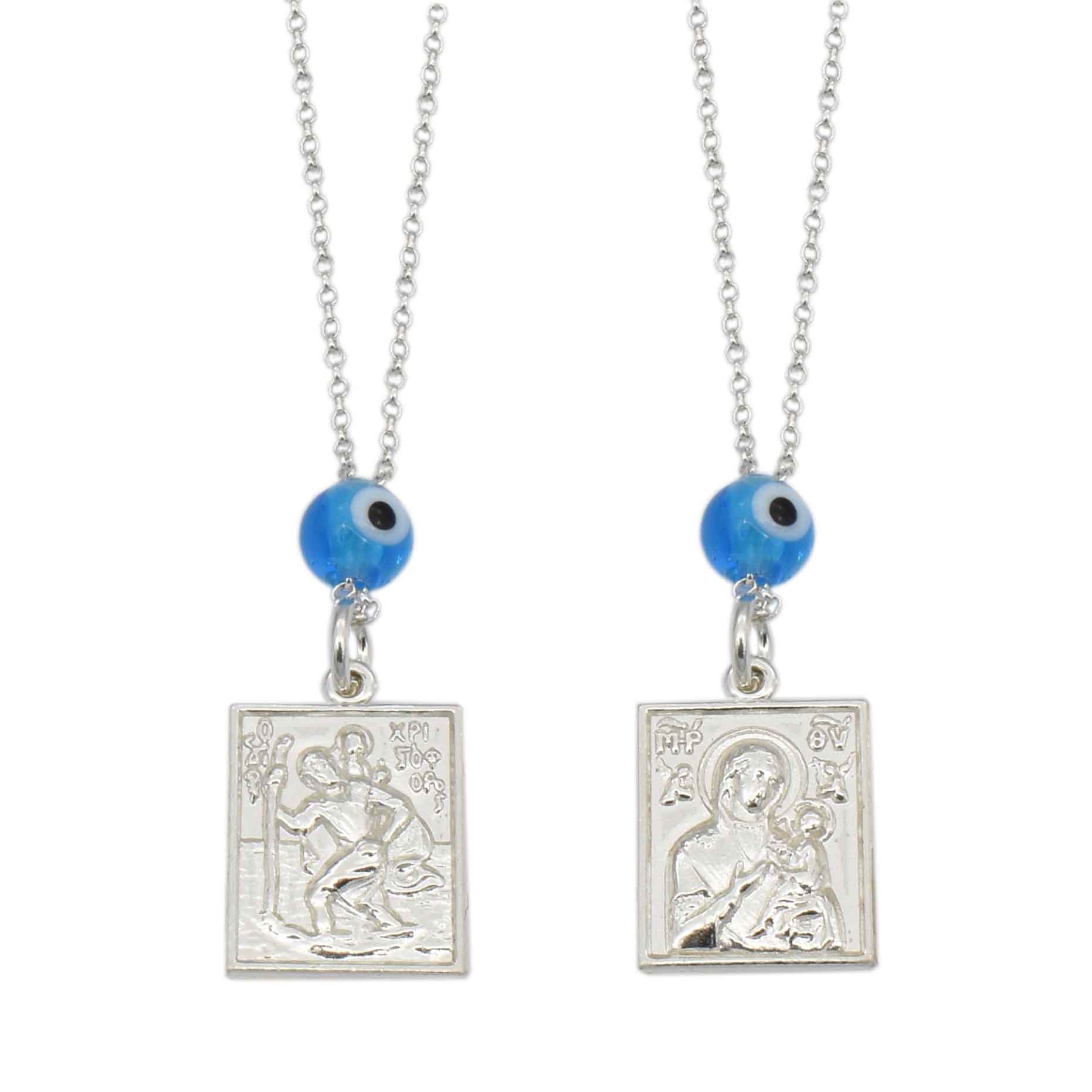 Φυλαχτό Αυτοκινήτου Διπλής όψης Παναγία-Άγιος Χριστόφορος από Ασήμι 925 ποσότητα