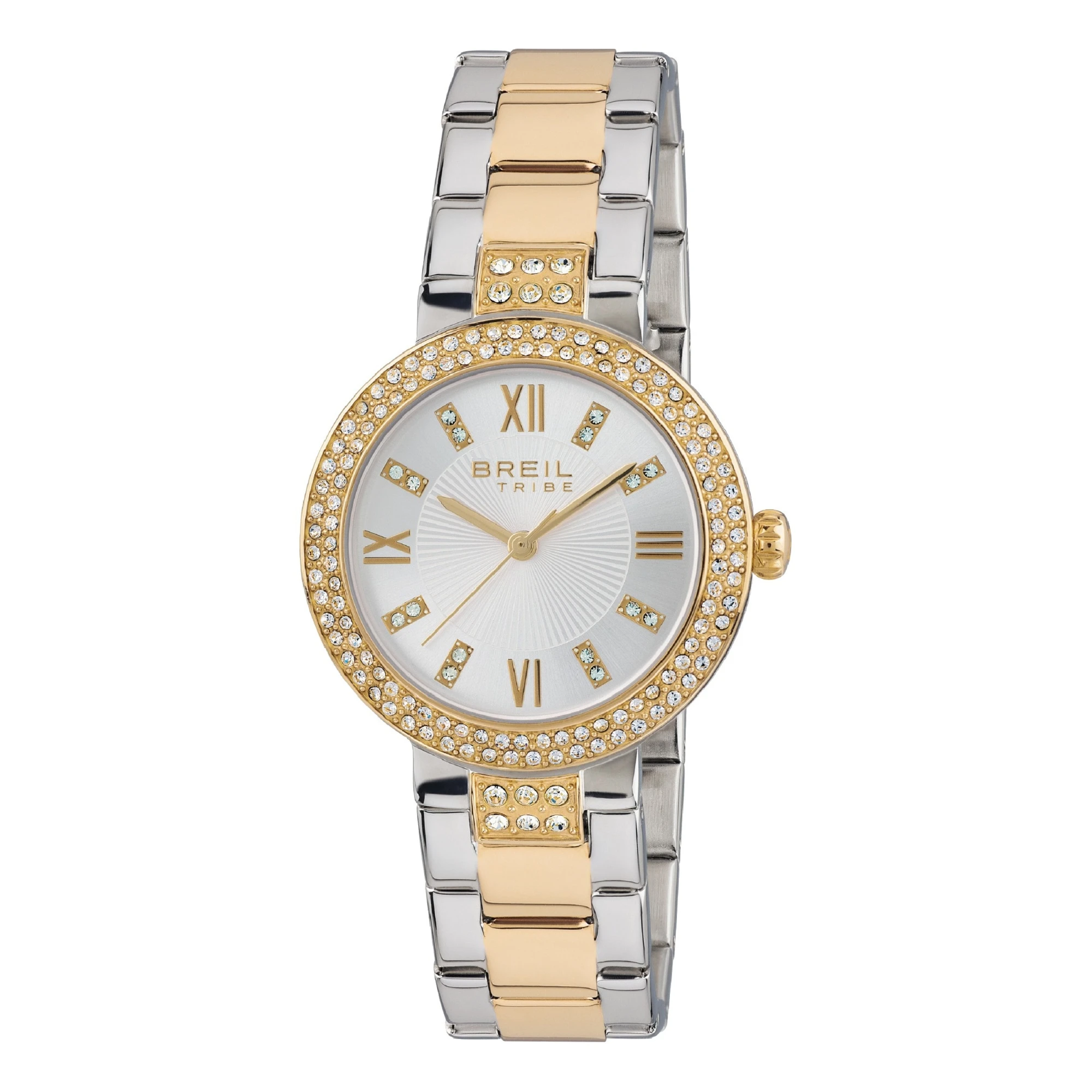 BREIL Tribe Dance Floor Crystals Silver Gold Stainless Steel Bracelet