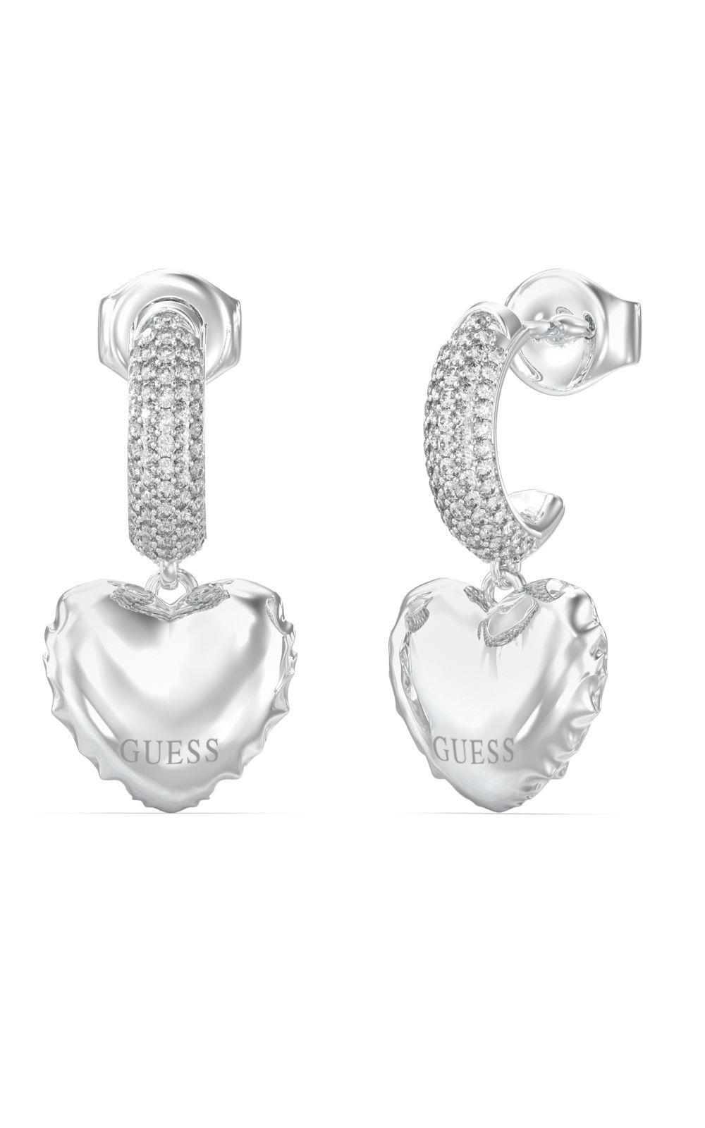 GUESS ICONIQUE Σκουλαρίκια Κρίκοι Λευκοί Με Καρδιές από Ατσάλι
