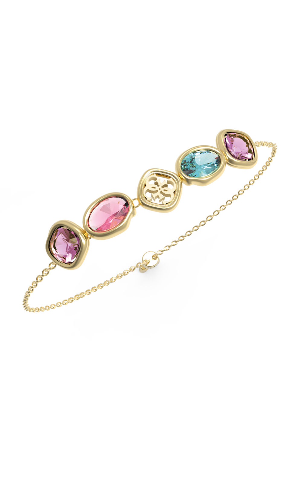 GUESS MAMOUNIA Βραχιόλι Χρυσό Ατσάλι Με Πολύχρωμες Πέτρες