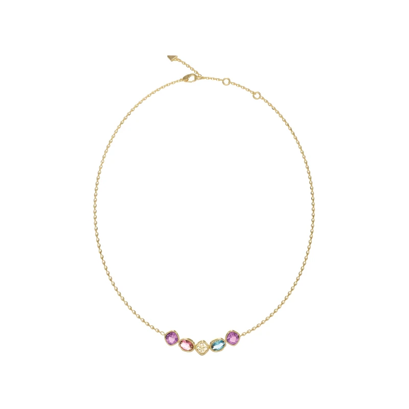 GUESS MAMOUNIA Κολιέ Χρυσό Από Ατσάλι Με Πολύχρωμες Πέτρες Και Λογότυπο ποσότητα