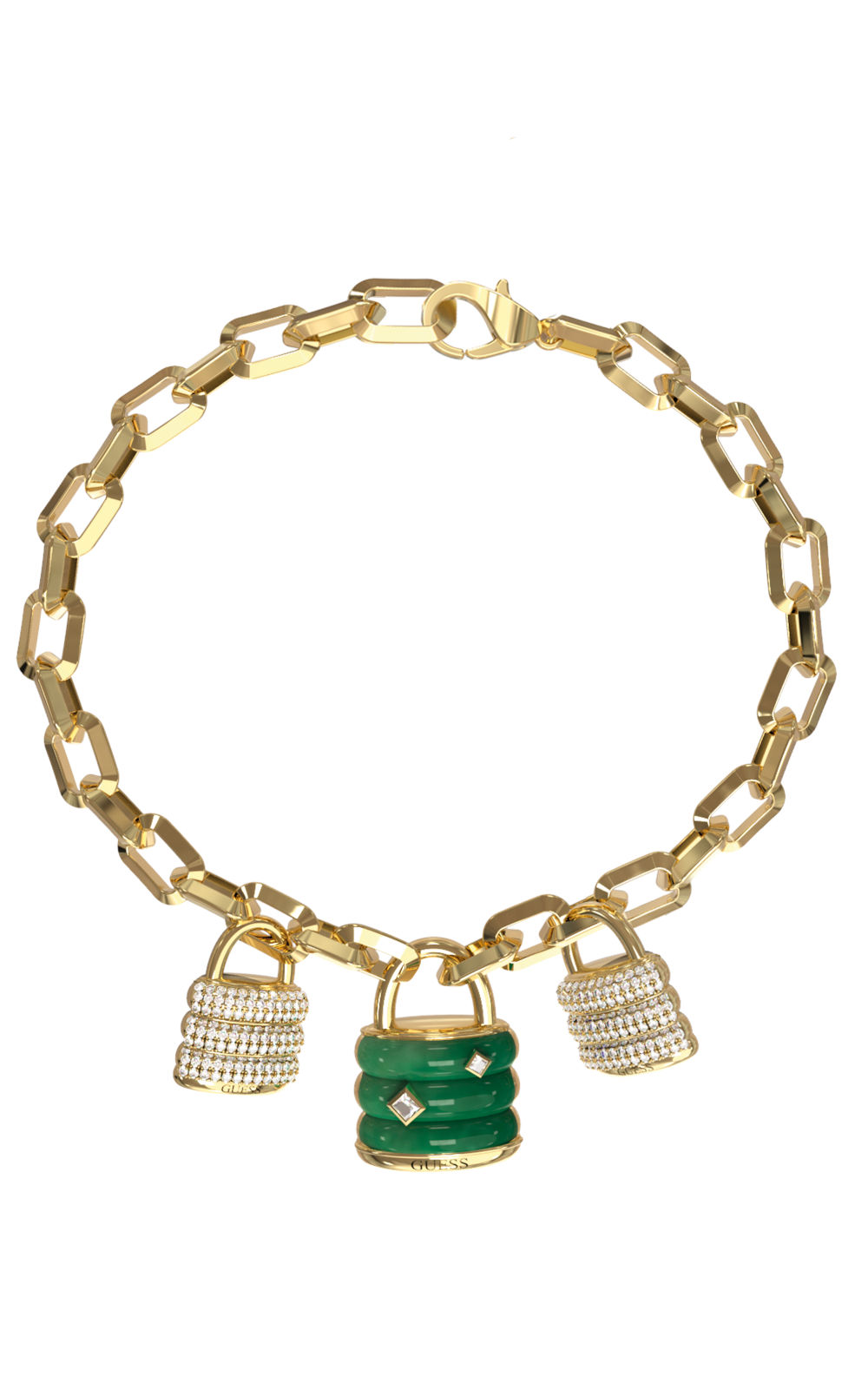 GUESS MY SECRET Βραχιόλι Χρυσό Ατσάλι Με Πράσινο Και Χρυσά Λουκέτα