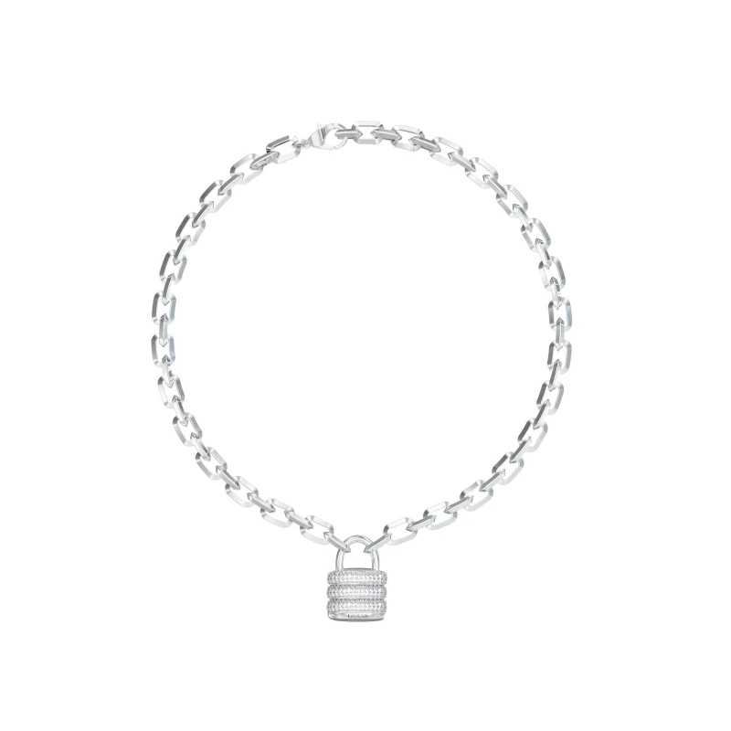 GUESS MY SECRET Κολιέ Λευκό Ατσάλι Με Λουκέτο