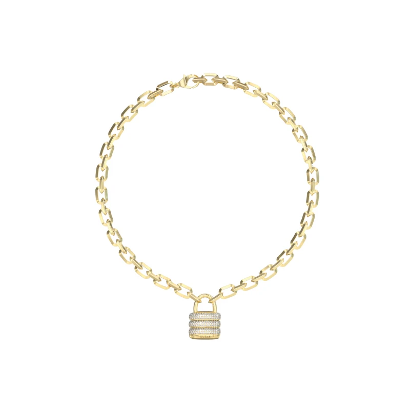 GUESS MY SECRET Κολιέ Χρυσό Ατσάλι Λουκέτο Με Πέτρες ποσότητα
