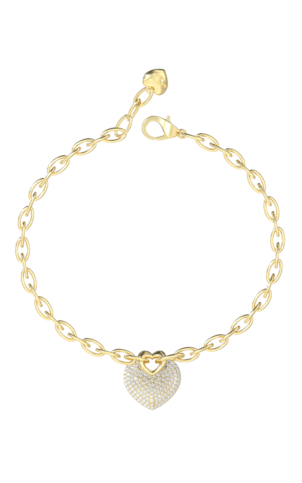 GUESS STEEL CRAZY IN LOVE Βραχιόλι Χρυσό Με Καρδιά Με Πέτρες