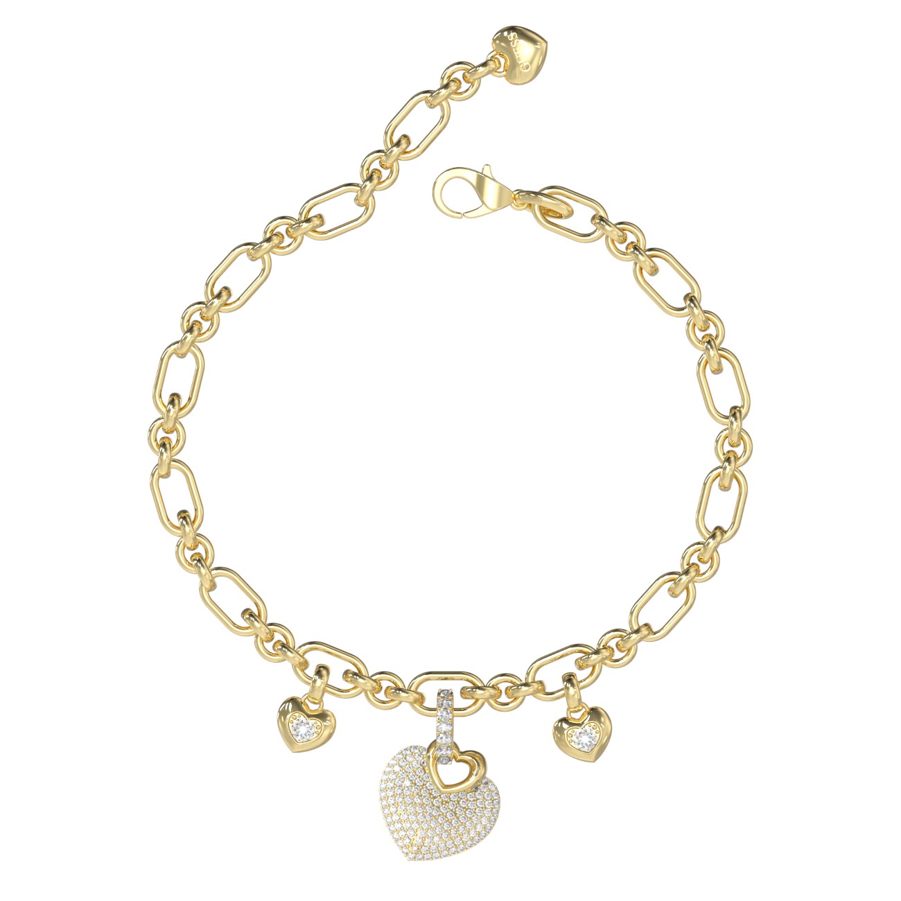 GUESS STEEL CRAZY IN LOVE Βραχιόλι Χρυσό Με Τρεις Κρεμαστές Καρδιές ποσότητα