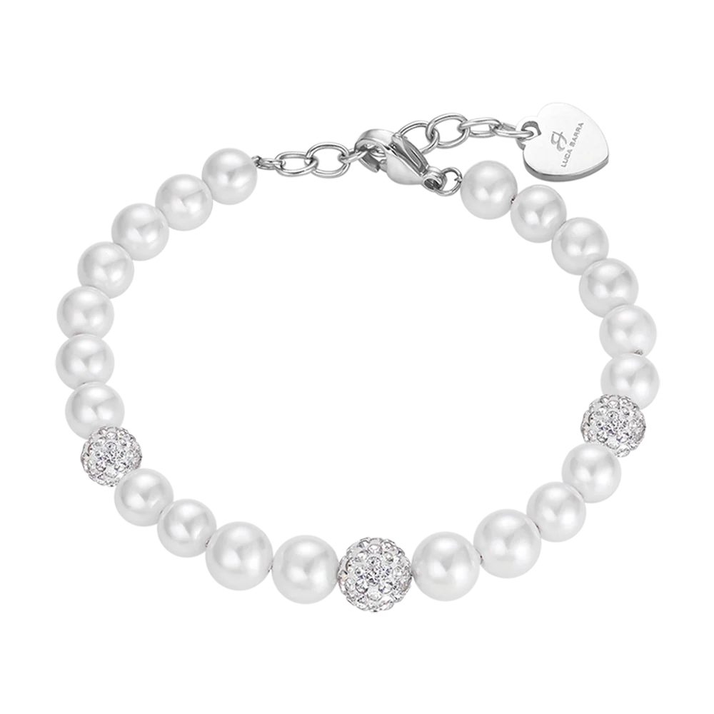 LUCA BARRA Βραχιόλι Πέρλες Λευκό Ατσάλι