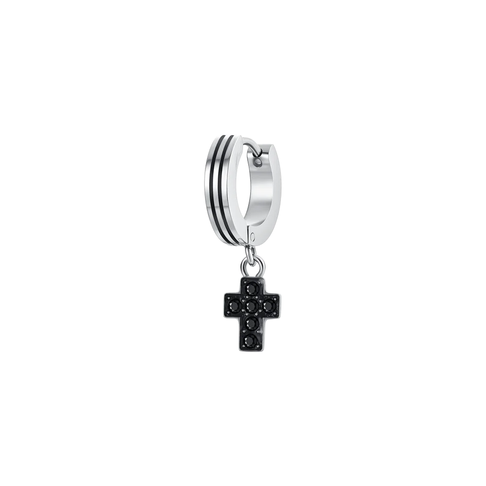 LUCA BARRA Σκουλαρίκι Κρίκος Σταυρός Ατσάλι
